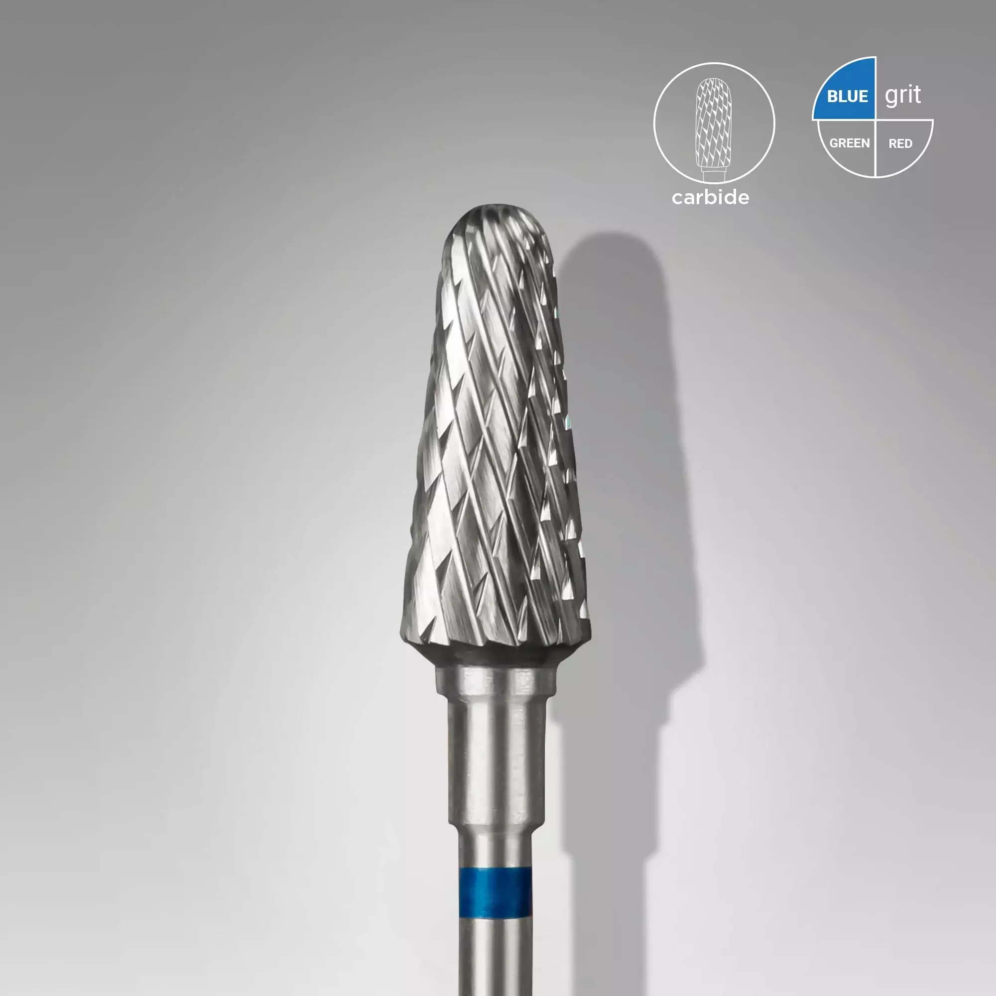 Frez karbidowy niebieski do zdejmowania masy hybrydowej oraz żelowej.