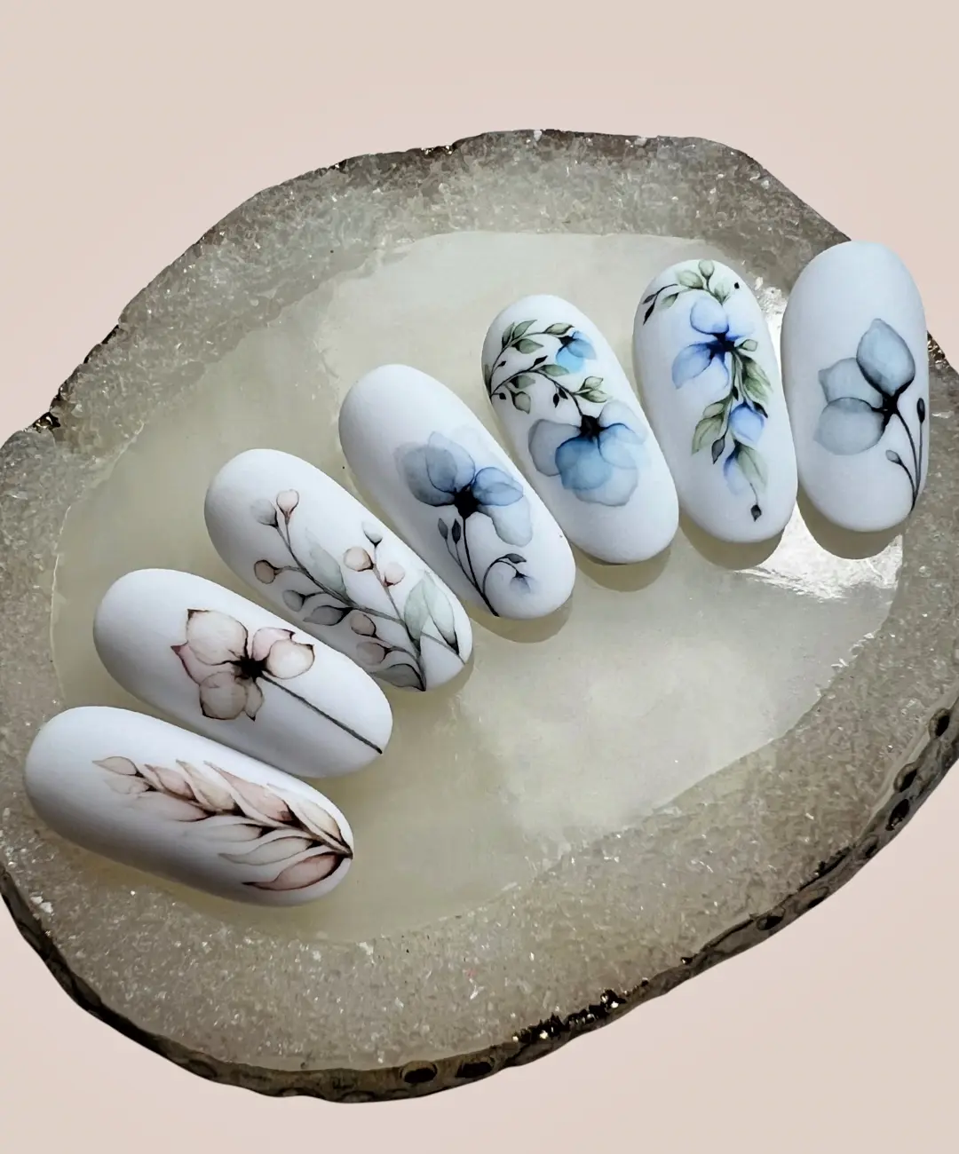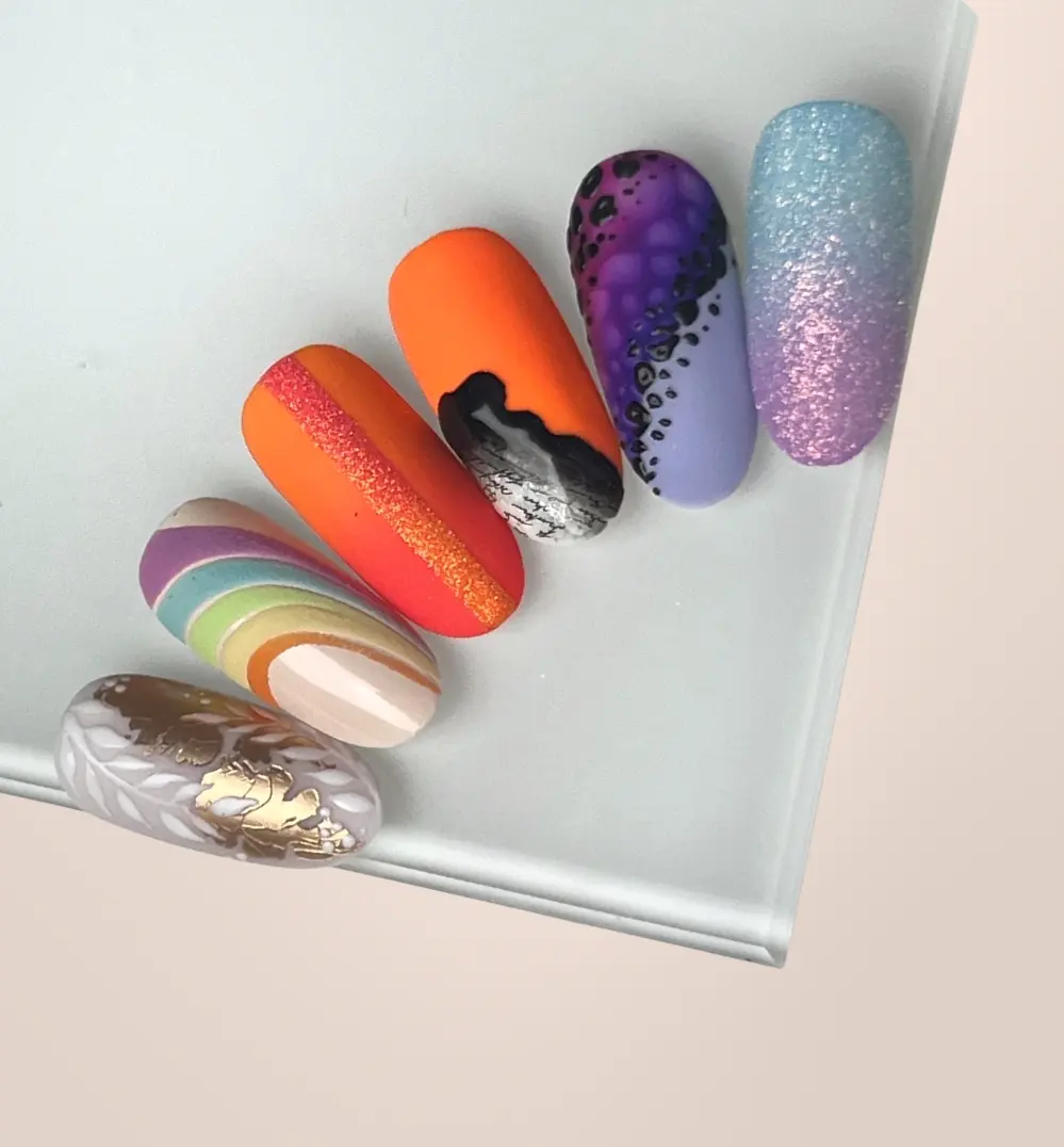 Warsztaty zdobień Mix Media to  światna opcja dla początkujących stylistek. Na tych warsztatach nauczysz się zarówno podstaw tj. wcieranie pyłków czy odbjanie folii, ale również zdobień bardziej zaawansowanych. Tematyka i kolorystyka zdobień dostosowana jest do obecnej pory roku, a poziom trudności dostosowujemy indywidualnie do poziomu grupy.